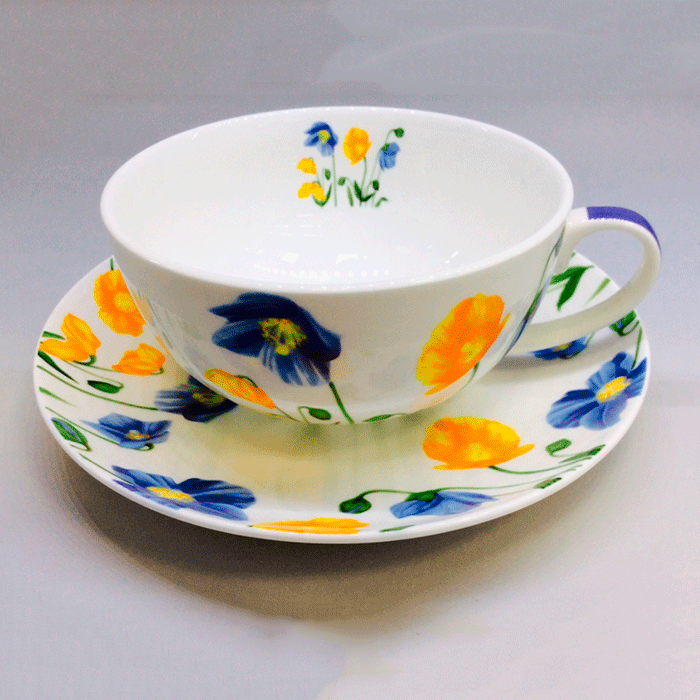 Чайные/кофейные парыЧайная пара,пиала → Чайная пара "Желтые и синие цветы" 350 мл