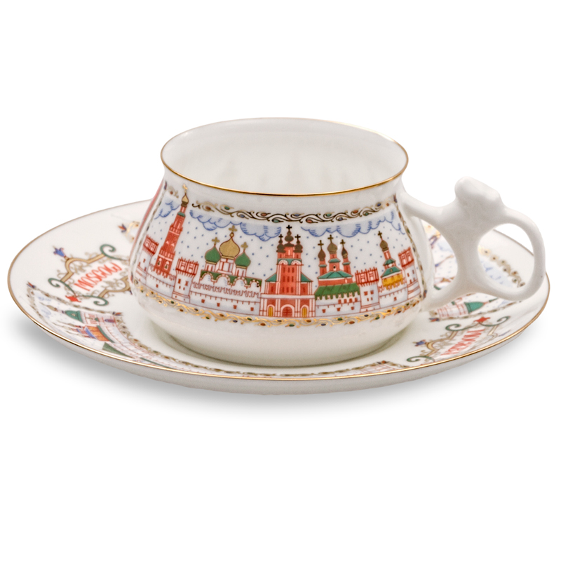 Чайные/кофейные парыКофейная пара → Чашка с блюдцем кофейная, рис. "Московский Кремль" 180 мл (форма "Билибина")