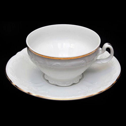 Чашка с блюдцем чайная, рис. "Золотой кантик" 155 мл (форма "Волна")