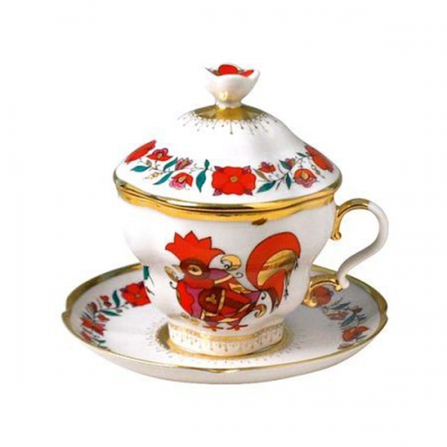 Чашка с блюдцем с крышкой, рис. "Сувенир" 250 мл (форма "Подарочная 2")